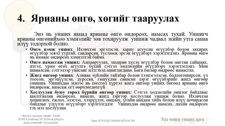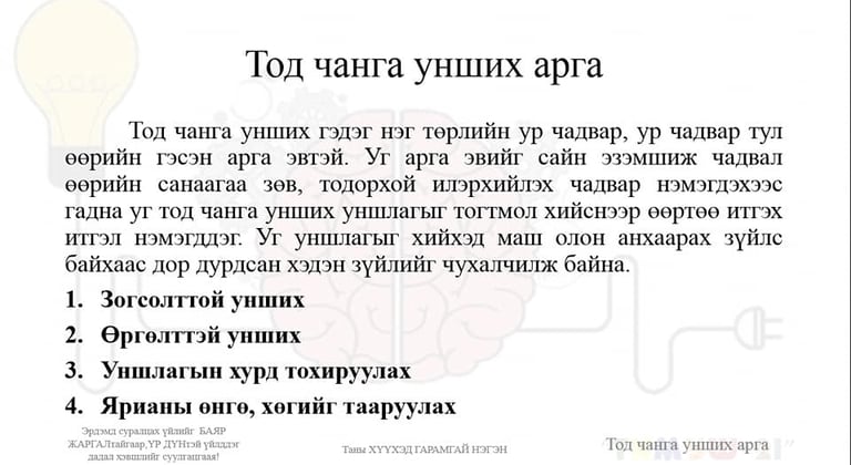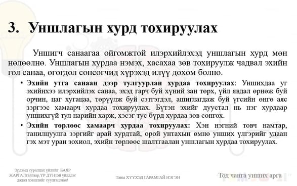 Тод чанга дуугаар унших нь өөртөө итгэх итгэл нэмэгдүүлэхээс гадна👍, хэл ярианы хөгжил сайжруулна😉!!! Хэл сурахад, эх хэлний чадвараа дээшлүүлэхэд ч ТОД ЧАНГА УНШИХ уншлагыг нас харгалзахгүй тогтмол хийгээрэй!